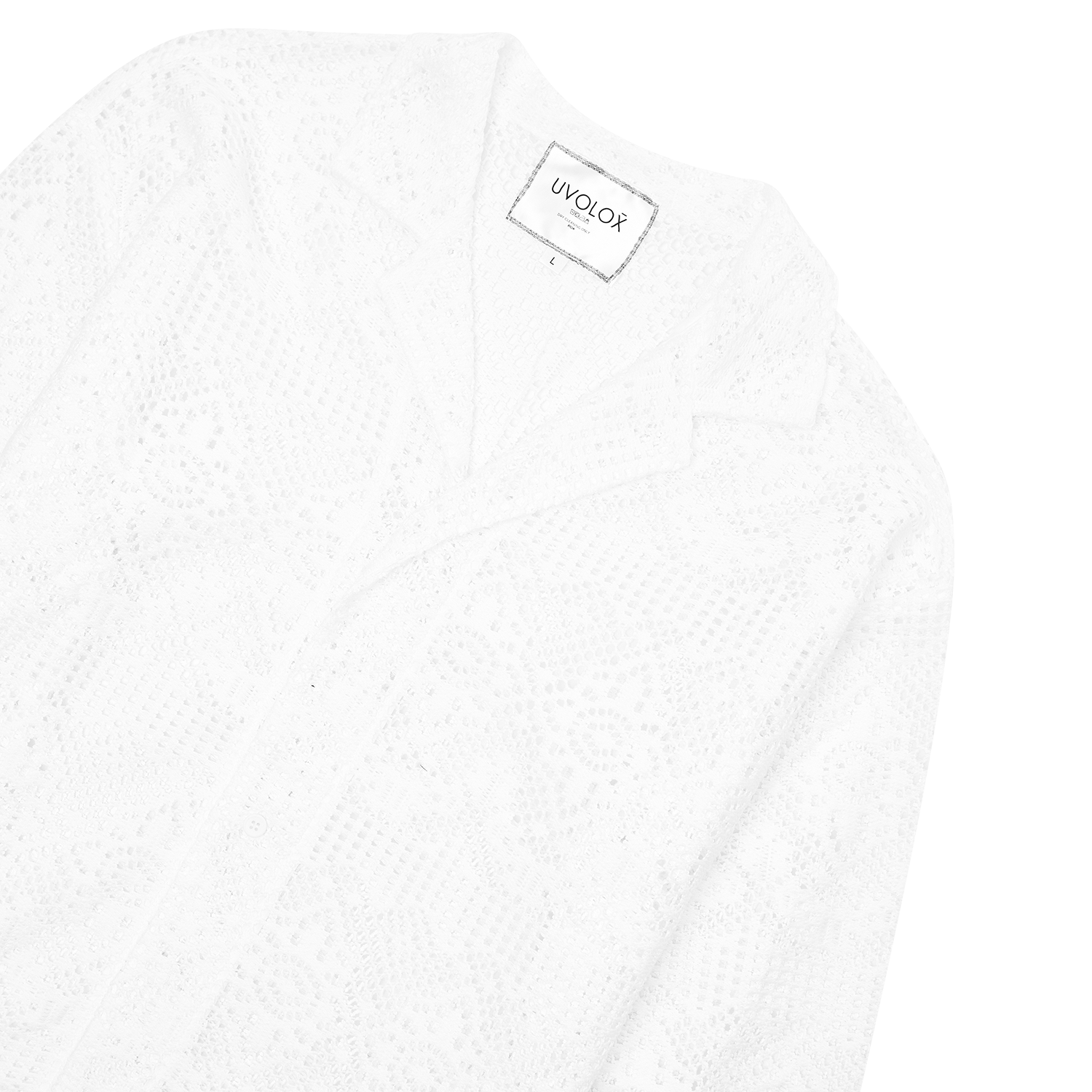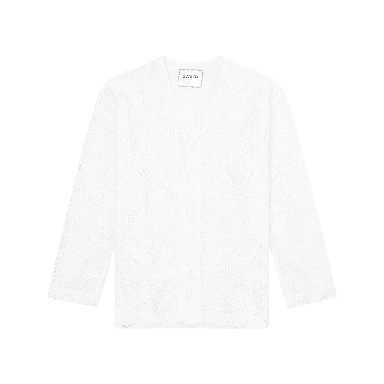 The Mystique Lace Shirt, a bold yet sophisticated piece designed for those who love to stand out. This Mandarin-collared lace shirt combines modern tailoring with intricate lace craftsmanship for an unforgettable look.