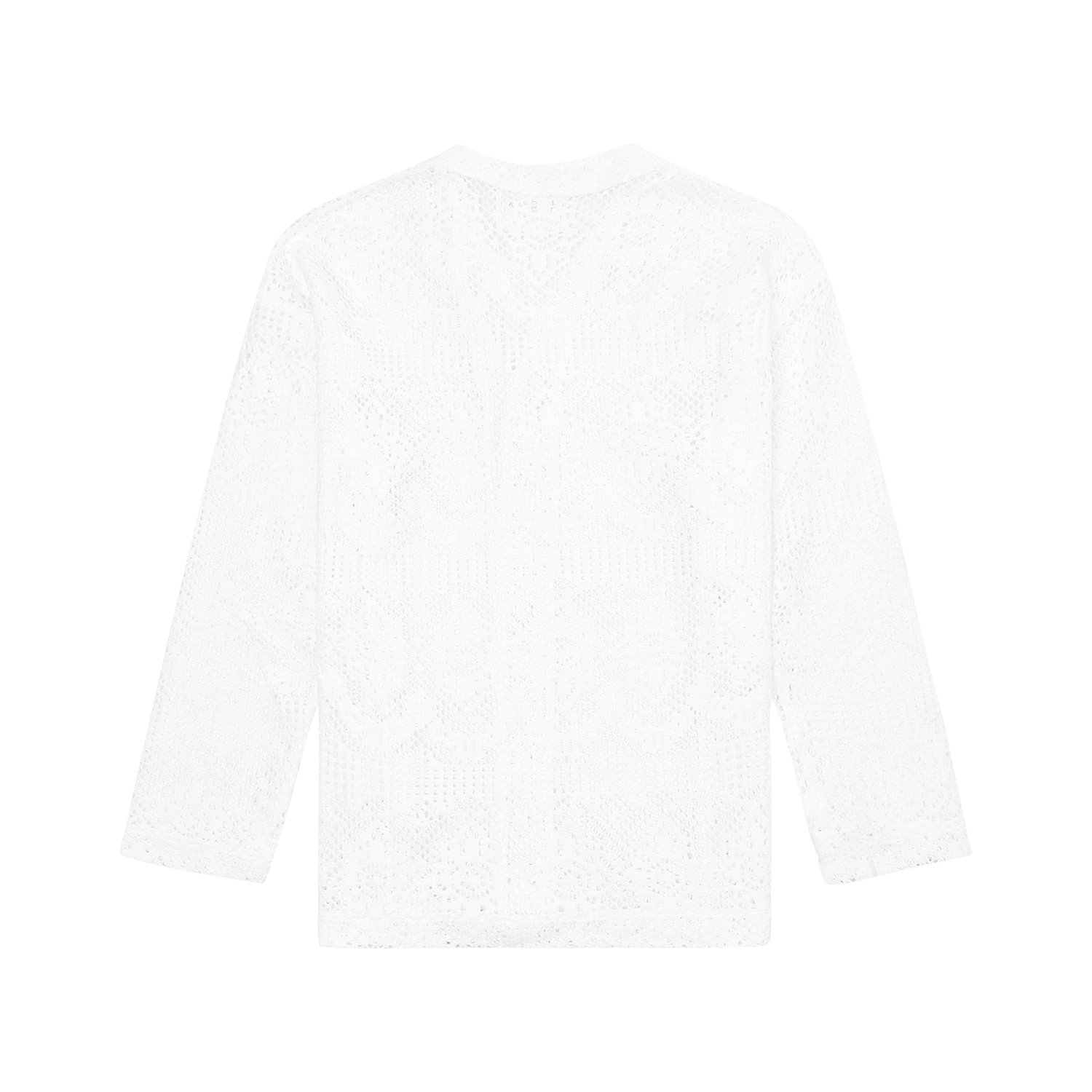 - The high Mandarin collar adds a unique touch of elegance, while the semi-sheer lace fabric exudes confidence and charm. Subtle buttons down the front complete the look, making it both functional and fashionable.